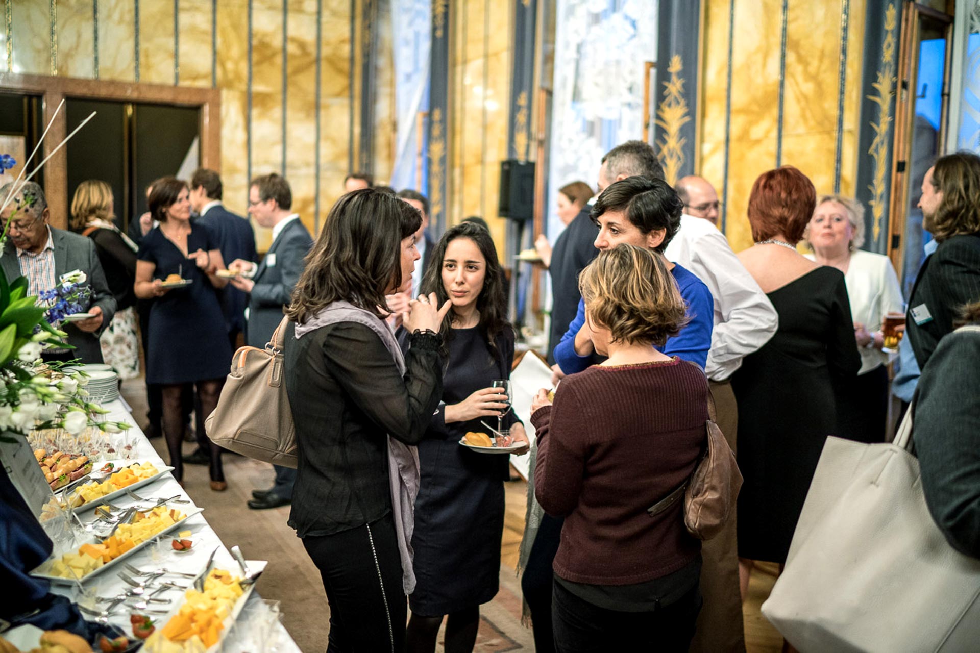 These are less formal gastronomic events. The receptions often take place during state visits, giving important awards and client events where the guests should be able to talk with each other. The refreshments are eaten in standing positions.